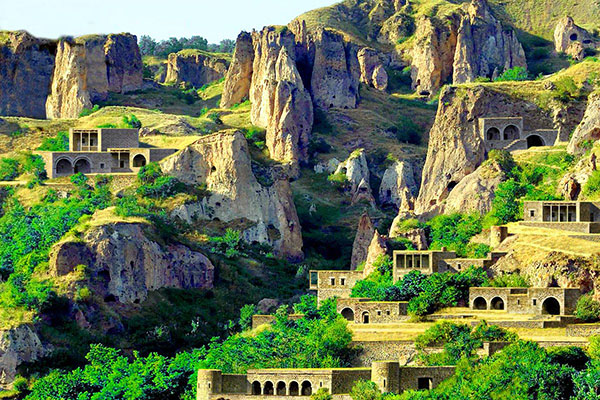 Our next stop is at Kndzoresk - the historical cave village, located on the steep slope of a gorge. It consists of natural and manmade caves. Since many of the dwellings were carved out over and around each other, a complex system of ropes and ladders were required for people to reach many corners of the community. Right up until the 20th century Khndzoresk Cave Village was the biggest village in Eastern Armenia.