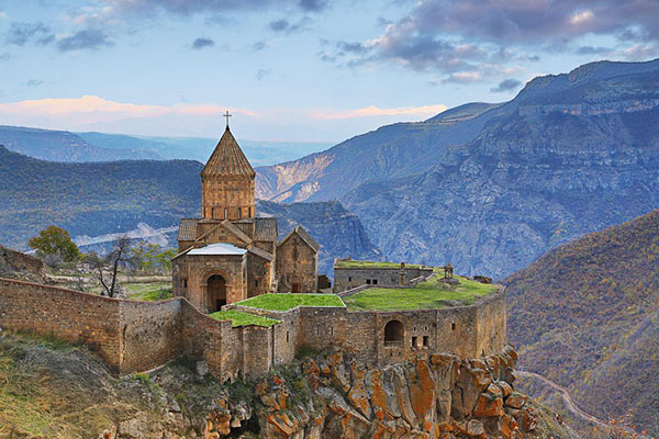 Departure to Noravank. Noravank means “New Monastery” in Armenian. However, today this name does not fit, as the monastery is already more than seven centuries old. The beautiful Noravank Monastery was built in the 13th century on the ledge of narrow winding gorge above the Amaghu River, near the city of Yeghegnadzor. The spare lines of the church contrast beautifully with the sharp red rock cliffs, and the dramatic scenery is one of the best reasons to visit Noravank.